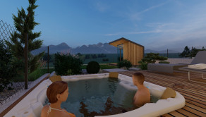 Ku každému Chaletu bude prislúchať samostatný pozemok o celkovej výmere cca 341 m2.