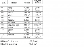 Úžitková plocha rodinného bungalovu typu P4i je 102,5m2 z m2 a 16m2 terasa.